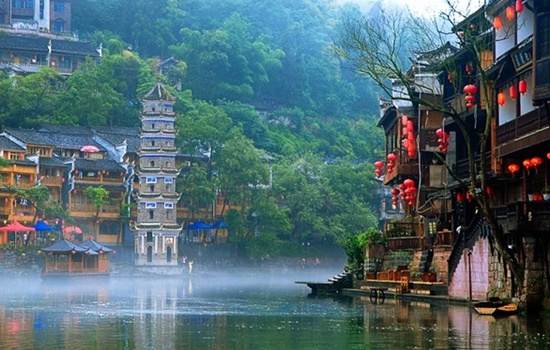 推荐理由:凤凰,中国最美丽的小城。碧绿的沱江从古城墙下蜿蜒而过,叠翠的南华山麓倒映江中。岸边的吊脚楼错落有致,绿树蓊蓊;撑一把油纸伞,携手爱人在雨中漫步,眼前的美景幽静而安闲;在这里,山是青翠的,水是灵动的,阳光是温暖的,身处其间,每一颗被爱情浸润的心灵快乐飞扬。