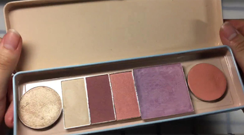 像眼影、腮红、修容这种粉类的产品,其实可以买一个好看的铁质文具盒,然后将需要的东西从原包装取出,用海绵胶之类的双面胶,自由组合成一个彩妆盘,不管是不是外出这样的一个DIY彩妆盘都非常的方便。