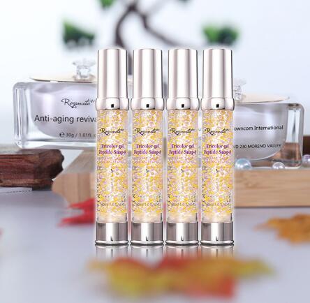 黄金蛋白肽套装内容为5支黄金液+1瓶(12根)黄金蛋白线,建议10天内用完。第一次操作时先将黄金液喷于面部,然后将12黄金蛋白线按照肌肉走向布线(布线时手一定擦干),一般为左右脸各四根,额头三根,下巴一根,然后喷黄金液,第一次操作使用一整支黄金液,进行由下向上逆时针打圈按摩,剩余4支每支分三次使用喷于面部每天早晚使用,两天用光一支。