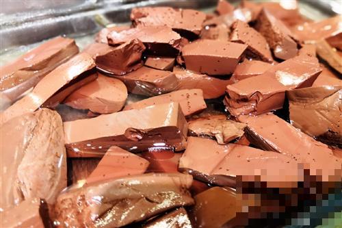 2、“人造猪血”柔韧性好,无气孔,不易碎,而真猪血切面粗糙,有不规则小孔,容易碎;
