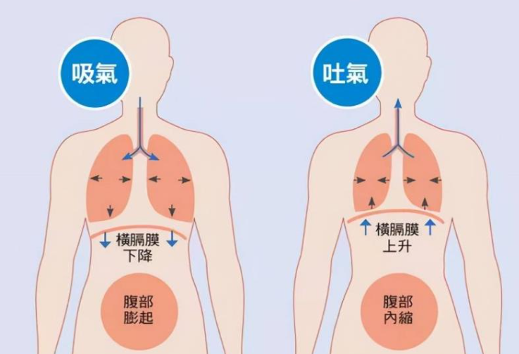 膈肌松弛时,膈肌位置升高,胸腔变小,协助呼气。严重的外伤可导致膈肌破裂,腹腔的脏器突入胸腔,形成膈疝。
