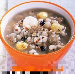 猪肝(猪心)30g,莲子3颗,薏苡仁20g,芡实15g,淮山药30g,月乃汤200ml