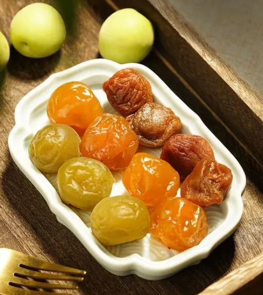 酸梅是蔷薇科青竹梅属的多年生乔木,在分类上和青梅比较接近,但是外形有一定的差异,其外形呈淡黄绿色,味道酸中稍带苦涩,营养价值丰富,能够降火消食,可以加工成多种食品,适宜脾胃不好的人吃