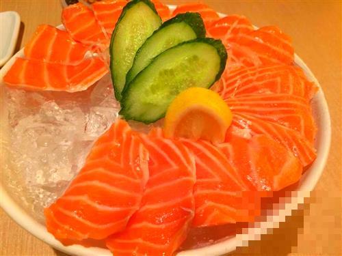 三文鱼:三文鱼鱼片一般可以切成厚块(0.7cm-1cm左右),厚度很厚。