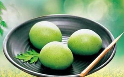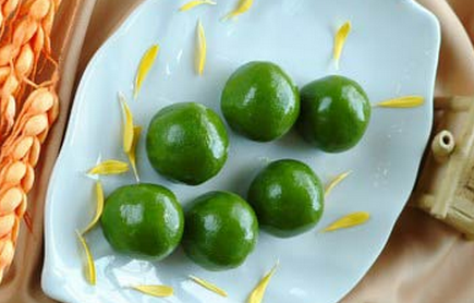 上海和江浙地区的传统名点。始创于宋代,为清明节寒食佳点之一,当时统称为"粉团",到明清时期,盛行于上海和江浙地区。因其色泽碧绿、生青,故名为"青团"。