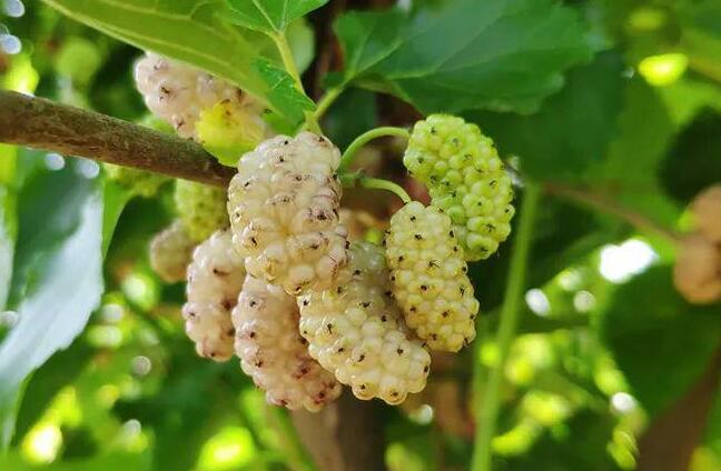 3、口感不同,紫黑桑葚口感脆甜清爽,白桑葚蜜甜粘口,含糖量高于紫黑桑葚。