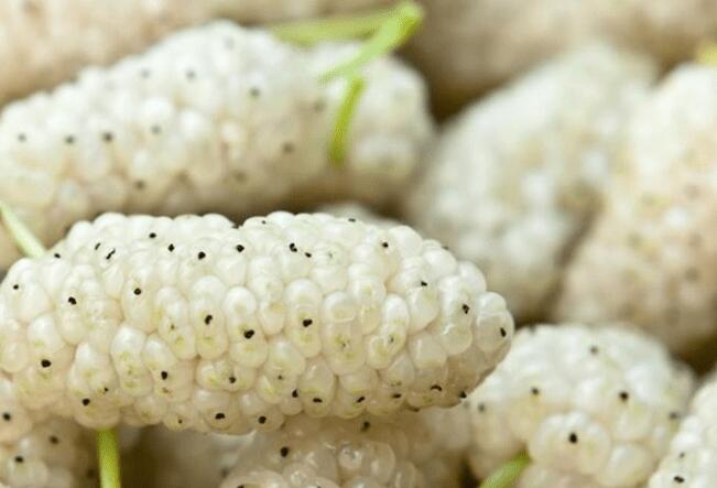 白珍珠桑葚品种,又叫韩国大白珍珠桑果、珍珠白桑葚、珍珍白果桑。是优良的白色桑葚品种,没有白玉王的落果和生长缓慢的现象,适合和周边城市桑葚采摘园种植。在白色桑葚品种里面,白珍珠算是比较好种的品种,白珍珠果桑生长快,丰产性好,管理简单。白桑葚跟其他桑葚有很大的区别,它的果实颜色为白里透亮,吃起来果汁饱满,像糖果一样甜美,被誉为“白珍珠”。白桑葚口感鲜甜,含糖量比黑桑葚明显要高,而且果子无酸味,那怕没有成熟也是没有一点点酸味的,不过没有熟透会有点青草味。白珍珠抗冻性较好,可以在冬天零下30度的环境下种植。