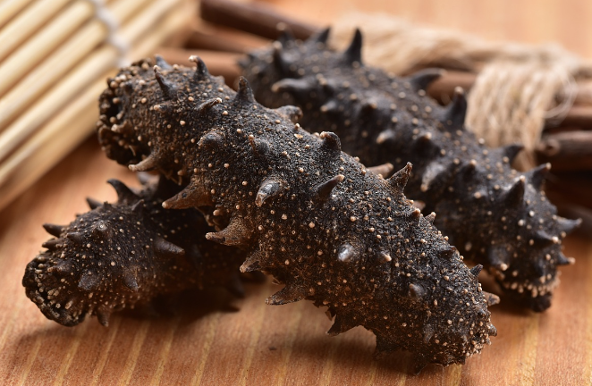3.外观:身体较饱满,海参的刺和棘刺笔直,整齐,并且有个别缺陷,并且口中露出少量石灰。
