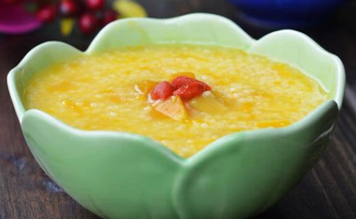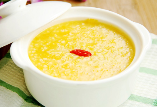 小米粥,因为小米性温而大米性寒,而且小米的营养更丰富!