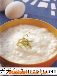 3.蛋清打至发泡倒入滚烫的粥中, 迅速搅匀食用时滴入柠檬汁拌匀即成,酸酸的别有一番风味。