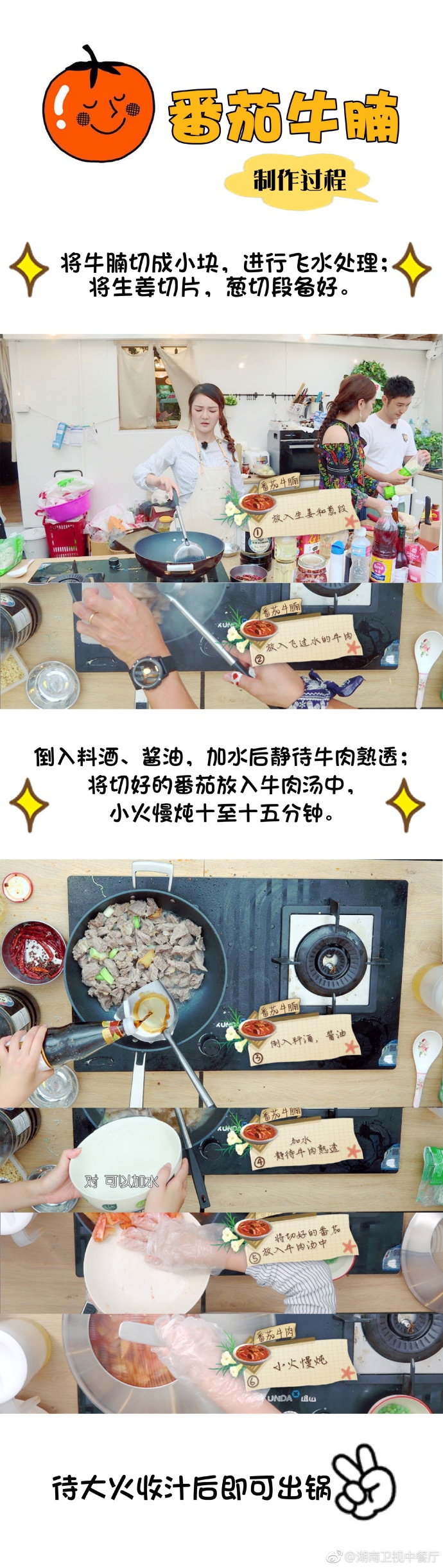 靳梦佳在做主厨的时候,照着菜谱也做出了几个菜品哦,番茄牛腩就是其中的一个,下面来看看番茄牛腩的具体做法。