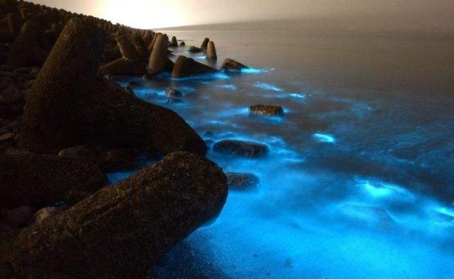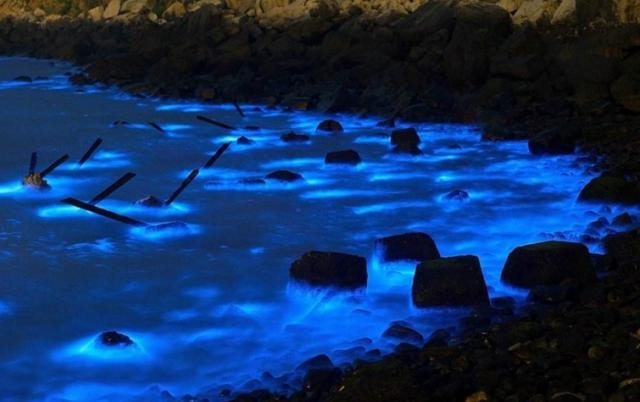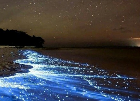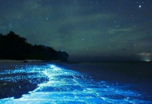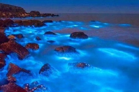 只为亲眼目睹一次奇异的“荧光海滩”。
