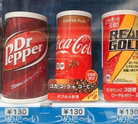 自动售卖机上 的可口可乐咖啡(Coca-Cola Coffee Plus),售价为130日元(约7.7软妹币)。最难能可贵的是,这款可口可乐咖啡(Coca-Cola Coffee Plus)的价格跟其他同等容量的罐装咖啡价格是一样的,真的是加料不加价的良心之作!