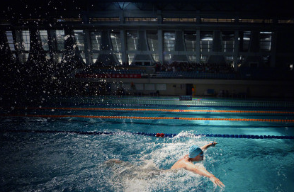 4.当泳员头部开始微微向上,肘关节开始屈曲,上臂开始旋转。
