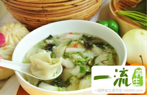 虾仁紫菜馄饨汤:【原料】鲜虾150克,馄饨皮50克,紫莱5克,虾皮10克,木耳10朵,葱、姜汁、食盐、味精,香油.酱油少许。