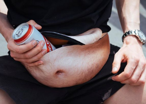 大肚腩腰包也被称之为老爸腰包,是非常特别的一个款式。和我们身体的肚子可以无缝连接,非常的逼真。很多网友评论说辣眼睛。其实大肚腩腰包是非常实用,也很安全的。