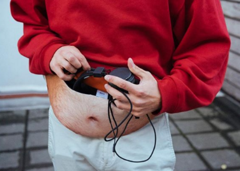 大肚腩+腰包,这个组合绝对和时尚搭不上边儿。自上世纪90年代以来,腰包就被时尚圈嫌弃。然而现在有一款独特造型的腰包引领了新潮流。 这款腰包称为Dadbag (老爸腰包),采用啤酒肚的造型,另外腰包上还有逼真的肚脐眼和浓密的毛发。 伦敦艺术家Albert Pukies设计了这款具有创意的腰包。