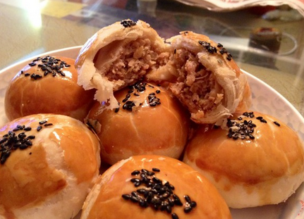 鲜肉月饼是江浙沪一带的传统特色小吃。苏式月饼的一种,中秋节节令食品。顾名思义,馅完全是由一大团鲜肉(猪肉)组成,皮脆而粉,又潜伏着几分韧,丰腴的肉汁慢慢渗透其间,可谓一绝。