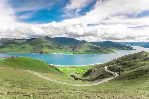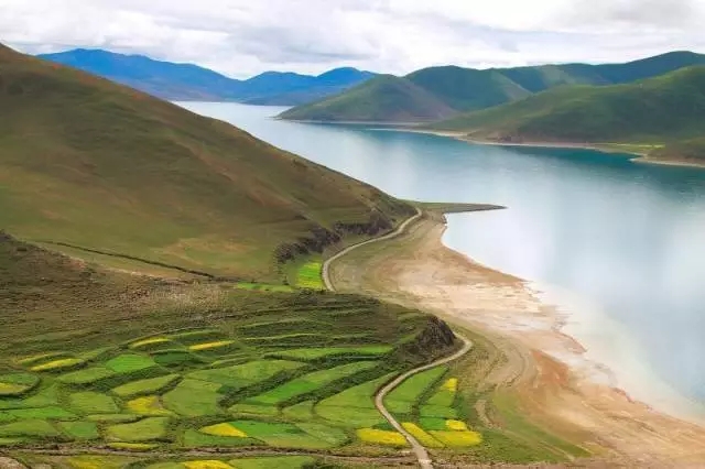 到过青藏高原的人,几乎没有不去看湖的。因为那是悬在天上的水,是天堂中最灿烂的翡翠。居高临下遥望脚下的羊卓雍错,就像一面碧蓝色的镜子镶嵌在苍茫群山之中,妖娆妩媚、被誉为世界上最美丽的水。
