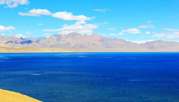 地处阿里境内的玛旁雍错,与纳木错、羊卓雍错并称为西藏三大圣湖,同时也是亚洲四大河流的发源地,是中国目前实测透明度最大的湖,透明度可达14米,清澈通透。清澈的湖水与蓝天相映,博大而坦荡。湖畔有纳木纳尼雪山簇拥,山光水色,出神入化。