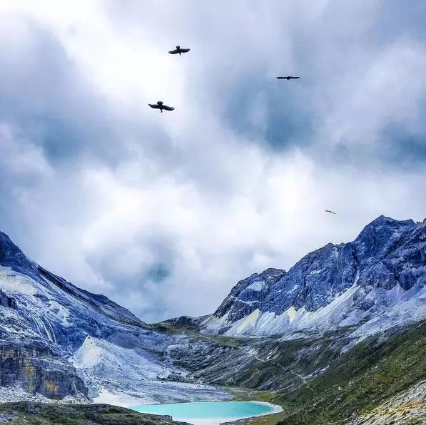 牛奶海位于四川亚丁自然保护区内是古冰川湖,湖的一侧是央迈勇的陡峭冰川,另一侧应该是仙乃日的山脉余脉。牛奶海就这样悠然静卧在两座巨大雪峰之间,冰川融雪滋润、养育着她的成长。湖水晶莹透彻,湖底钙化的岩石清晰可见。