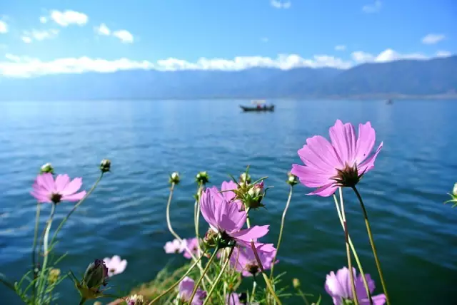 泸沽湖畔四季鲜花常开,宛若一座天然花园。云淡风轻,落花流水,在寂静中聆听风的歌声。泸沽湖美的惊人,像是一颗蓝色的眼泪。