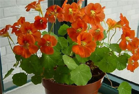 旱金莲是多年生的肉质草本花卉,喜欢温暖湿润的环境,不耐热,不耐涝。华北地区多为秋季播种,室内盆栽养护,作为迎春花卉,可以控制花期让其在元旦、春节前后开花。
