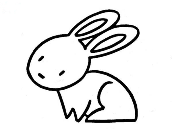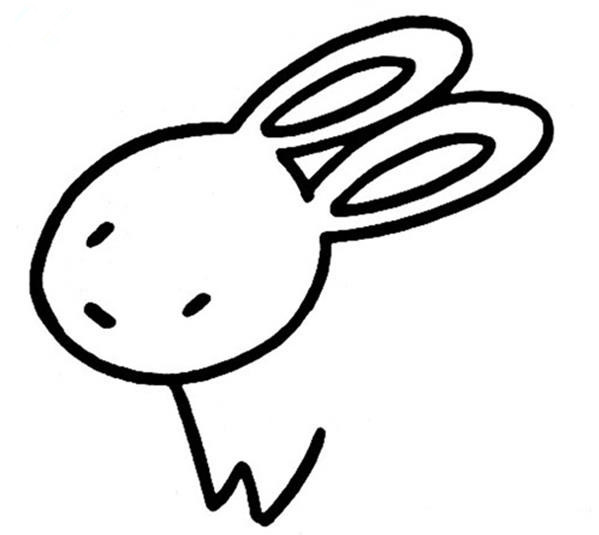 从兔子脑袋的后方延伸一条弧线,并完善小兔子的后腿,后腿较发达,在画的时候要比前腿画的要大一些为好,注意在前腿和后腿之间要添加上肚皮的小短线。