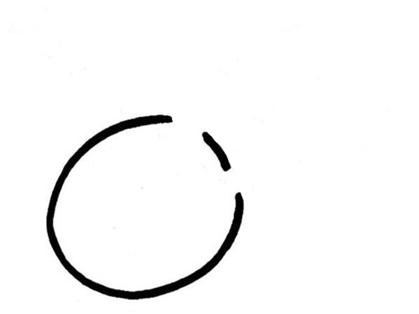 首先在纸张靠左的位置画上一个圆,但是在右上方的位置要留出两个缺口。