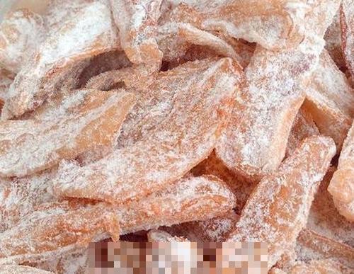 将腌制好的杨桃干捞出来,将水份挤干,在锅子里参加大量的白糖,再倒入杨桃干,用小火逐步煮,晓得白糖完整熔化,杨桃干酿成透明色,既可以捞出来。接着将杨桃干划一地排在烤架上,用100度来烤杨桃,烤五个小时后改为50度,再烤一个小时便可。将杨桃干掏出来,再拌上一点白糖,就可以吃了。
