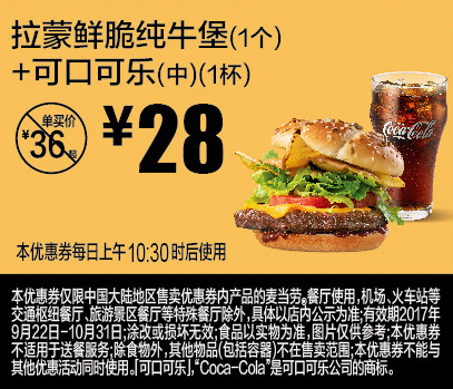 根据官网信息显示,麦当劳拉蒙鲜脆纯牛堡单价是28元一个。