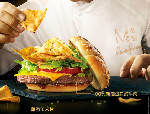 西班牙星级大厨拉蒙自2016年以来,已三度与麦当劳合作。这次,他遵循其专业直觉,发觉食材中的味觉潜力,创造了“拉蒙鲜脆纯牛堡”。汉堡选用了100%新澳进口纯牛肉,佐以和风味噌酱及西式烧烤酱,加上薄脆玉米片,搭配新鲜生菜与番茄,让口感混搭升级,再一次挑战消费者的味蕾。