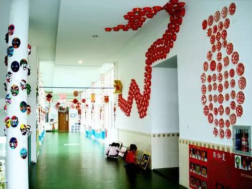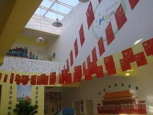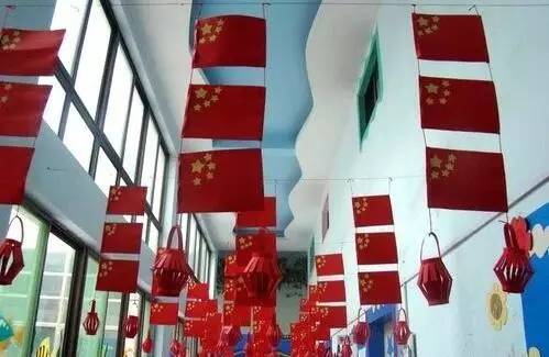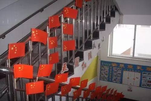 一串树叶国旗美美地挂在教室的门口、窗户上,瞬间烘托出节日的气氛。