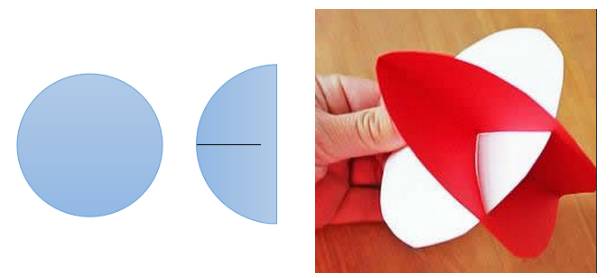 第二步:将圆形的纸片进行对折,形成半圆的结构出来