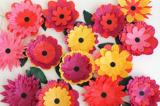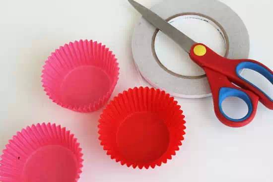不同的剪法有不同的花朵造型哦~用绿色的蛋糕纸剪出叶子形状吧~