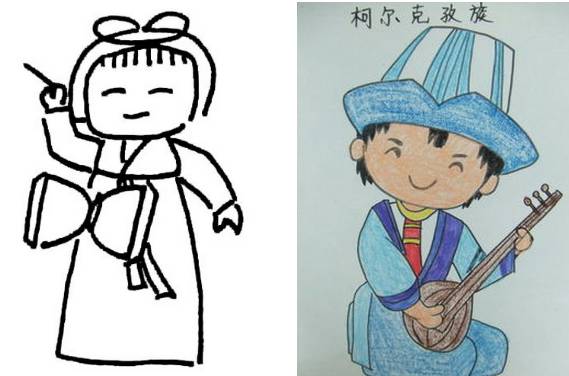 (图片可以从网上搜各民族的简笔画,然后打印。)