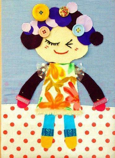 布艺拼贴,特别是中国传统的花布是更适合这一题材的手工材料。