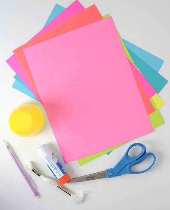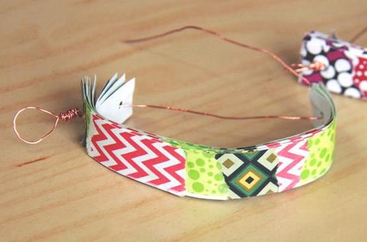 第2步:将彩纸剪成同样长度宽度的纸条,然后用铁丝将它们呈一定弧度的串起来