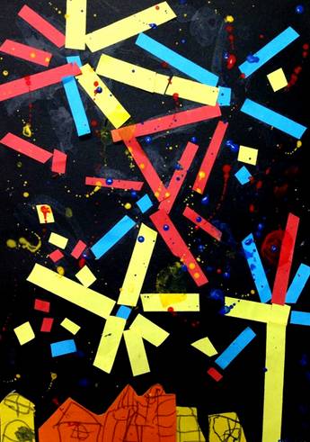 纸条烟花经济实惠,与小班幼儿稚嫩的图画相得益彰,