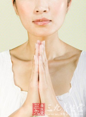 两手虎口交叉相握,这时左手食指是在右腕的背部,而食指尖下就是列缺穴。此穴位于三经交会处,因此不仅对于肺经,还对大肠经和任脉的经气都具有调节作用。