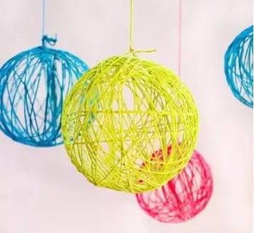 方法:毛线沾着面粉加水和成的浆糊,缠绕贴在气球表面,之后将气球戳破即可。