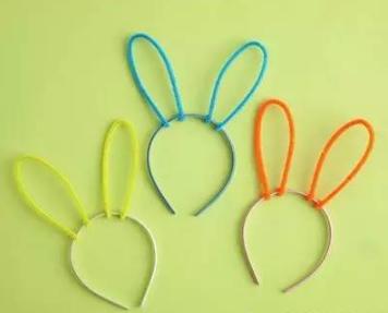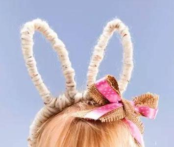 方法:用扭扭棒扭出兔子的耳朵,固定在发箍上,再用毛线缠绕,稍加装饰,很可爱吧。送给小女生,绝对喜爱。