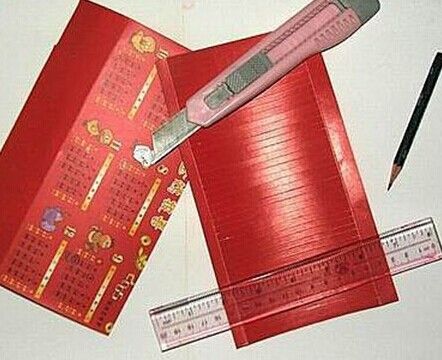 1、准备一张长方形的红色卡纸(我是用一张过期的旧月历卡) 自己做的漂亮的小灯笼。