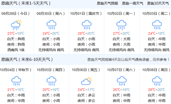 总结下,十一期间恩施的天气基本都是小雨伴中雨,或者大雨,一整个假期都是下雨天!