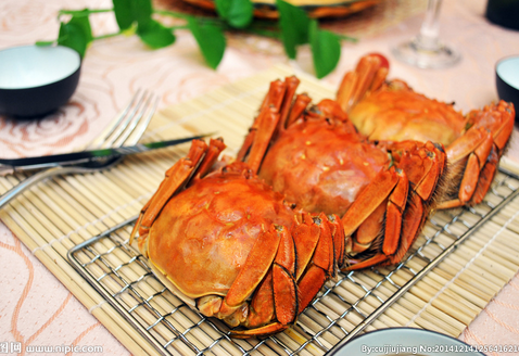 大闸蟹:大闸蟹又称中华绒螯蟹是一种经济蟹类,又称河蟹、毛蟹、清水蟹。为中国久负盛名的美食。其螯足用于取食和抗敌,掌部内外缘密生绒毛,绒螯蟹因此而得名。杂食性动物,鱼、虾、螺、蚌、蠕虫、蚯蚓、昆虫及其幼虫等均可作为大闸蟹的动物性饵料。