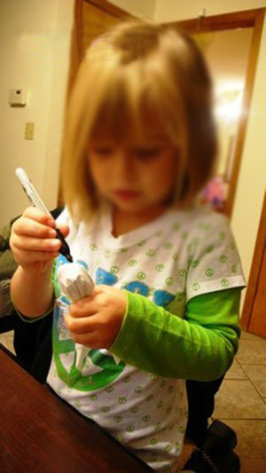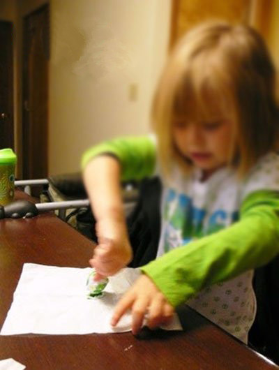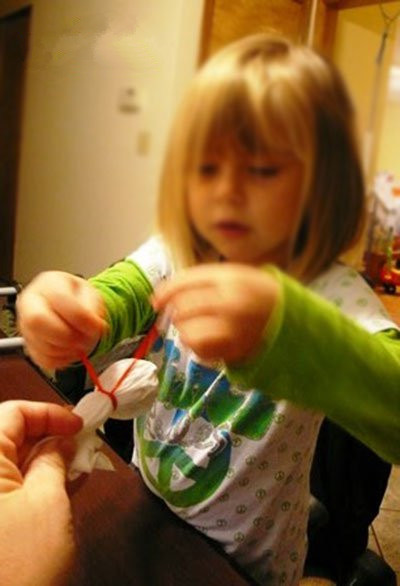 材料:棒棒糖,纸巾,剪刀,丝带,黑色笔