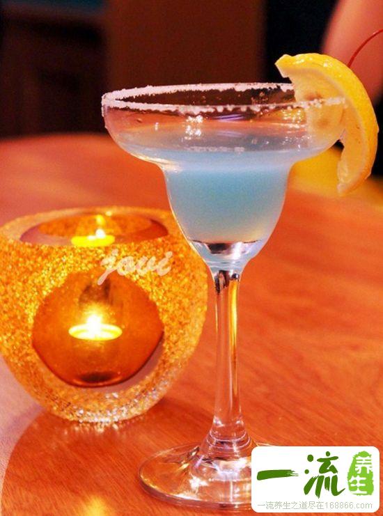 配料:清酒3/10,樱桃酒1/20,柠檬汁1/20,汤力水4/10,蓝色柑香酒微量,白色柑香酒1/5