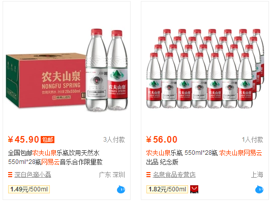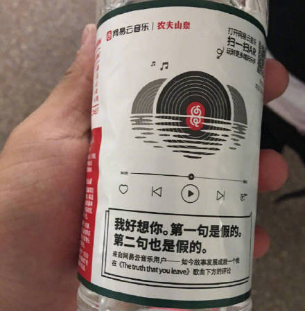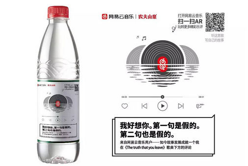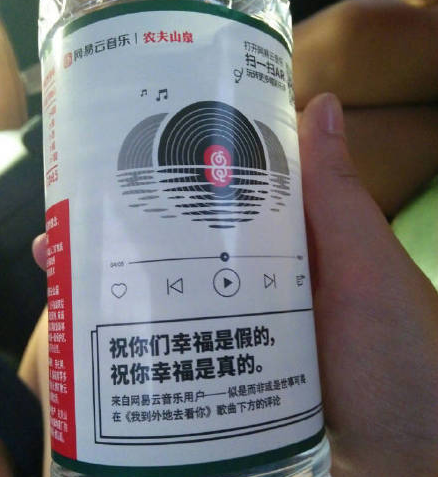 网易云音乐和农夫山泉宣布达成合作,精选出30条网易云音乐乐评,印在4亿瓶农夫山泉饮用天然水瓶身,制成“乐瓶”,并在北京、上海、杭州、南京等全国69个城市和京东超市销售。