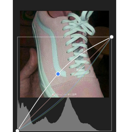 用colordrop取色,可见图片的显示色彩的确是灰绿。经过矫正白平衡之后鞋子呈现出粉白(鞋子的实际色彩)……结论:大脑以旁边的手指为参照脑补出了一个矫正之后的色彩[二哈]可以遮住旁边的手指再看看鞋,奇妙的变成了灰绿呢……