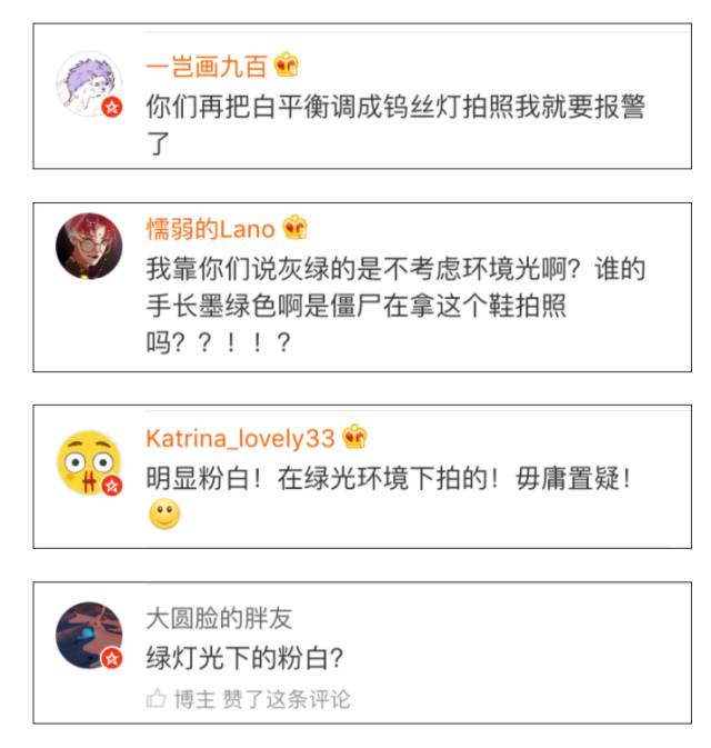 这鞋子到底是什么颜色?粉白?还是灰绿?